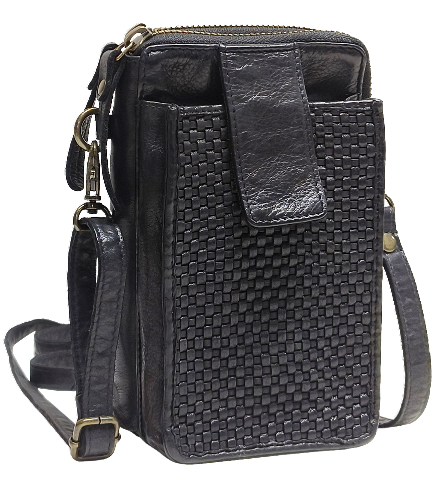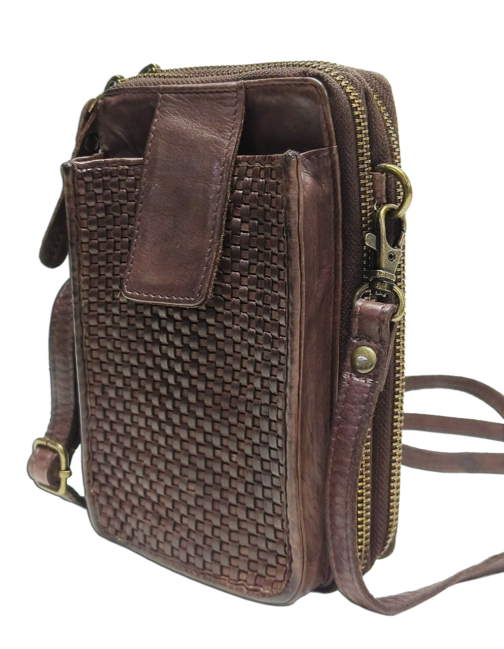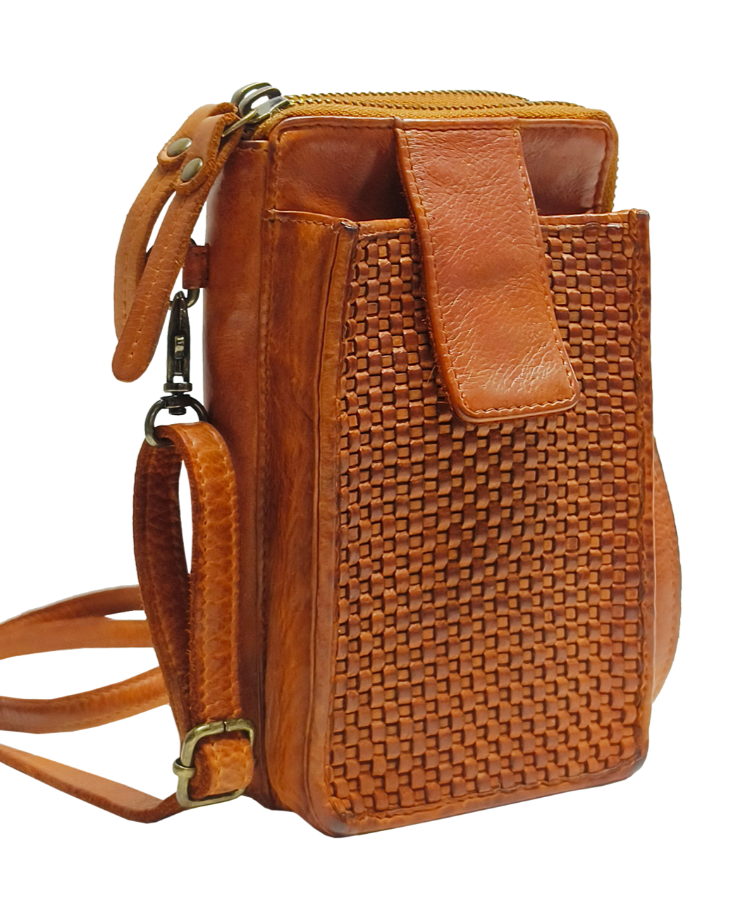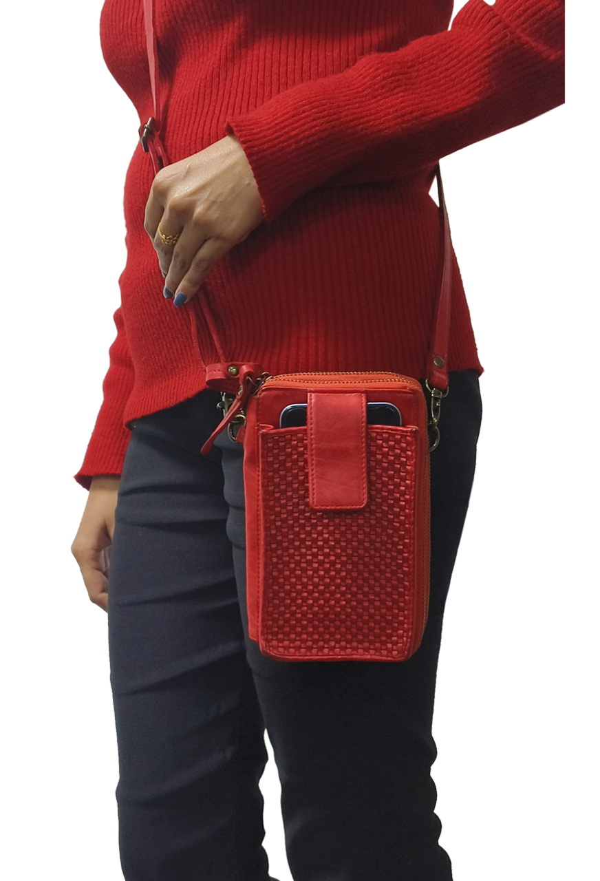 This Cross over Washed Leather Bag will fit up-to 12 Cards and your Mobile Phone, as well as, a bag pocket that is perfect for a pair of Glasses/Keys/Passport Etc.